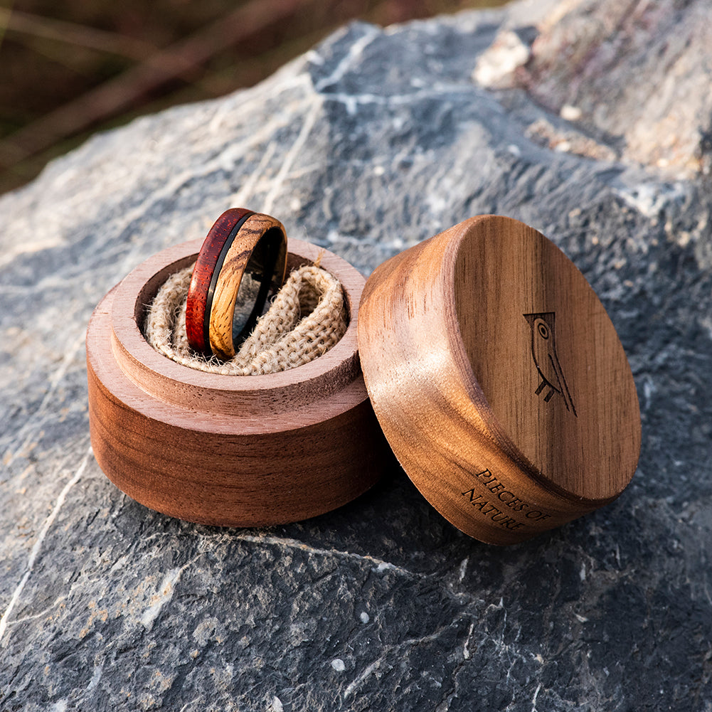 טבעת עץ נשית ועדינה בעבודת יד, עשויה מעץ טבעי בגימור חלק ומעוגל. שילוב מושלם של פשטות טבעית עם מראה אלגנטי ונקי.