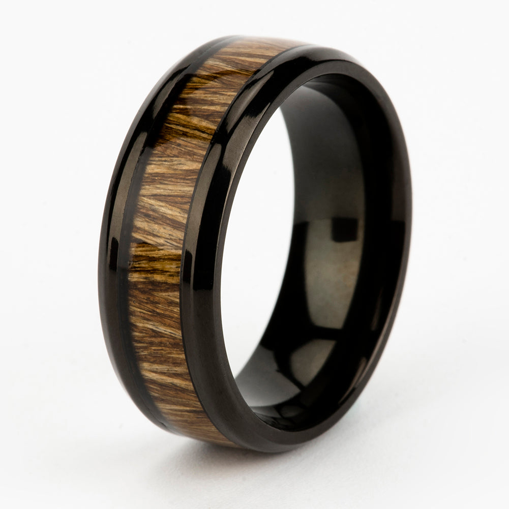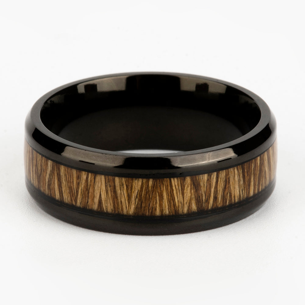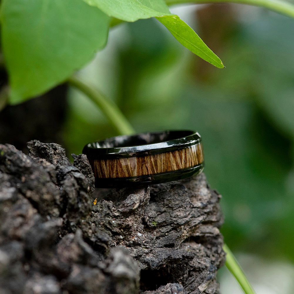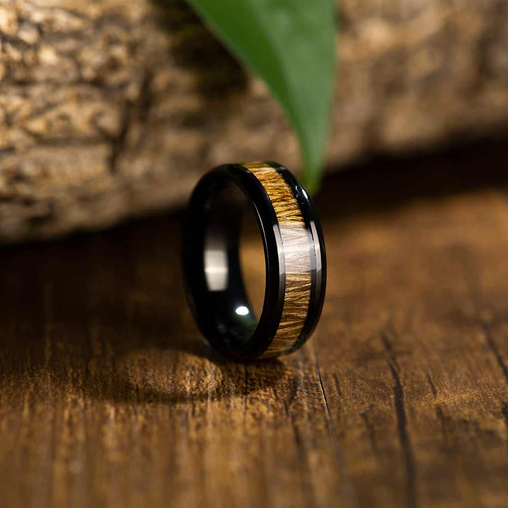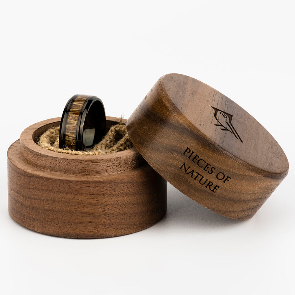 טבעת בעיצוב מודרני עשויה 100% עץ טבעי בגימור מבריק, עם דוגמת עץ ייחודית.