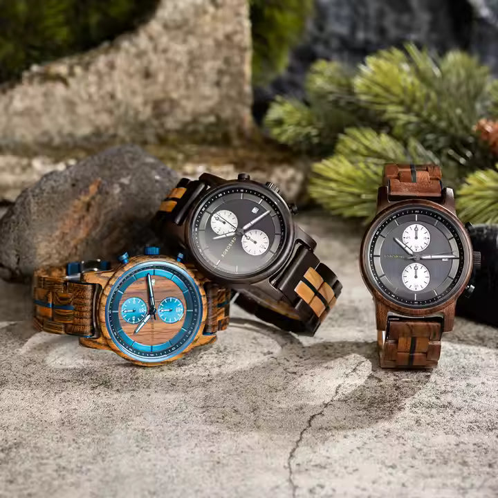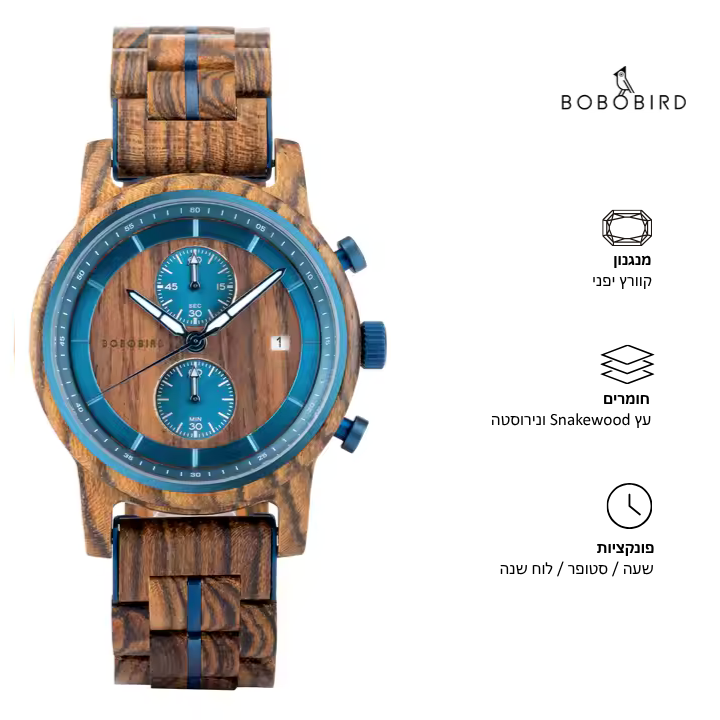 שעון עץ יוקרתי בעיצוב מודרני וייחודי. מתאים לגברים ולנשים. אידיאלי כמתנה, למיתוג עסקי או כל שימוש אישי.